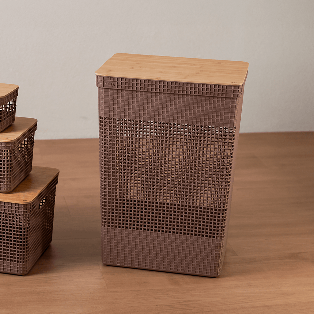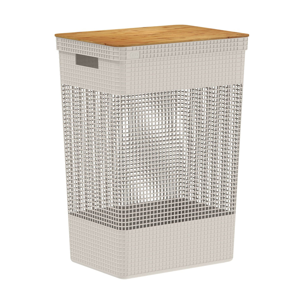 Cesto de roupas Ou 49L com tampa de bambu Linha Grid